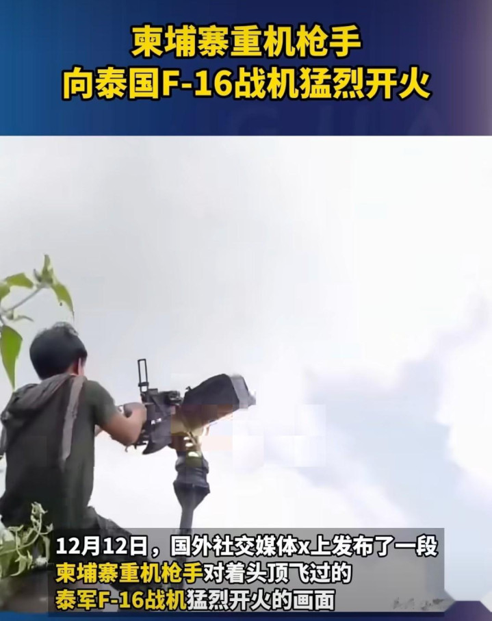 最近两天柬埔寨和泰国打的可真够凶的。两边使用了真的通盘不错使用的各类刀兵。并且,相比难绷的一幕出现了:柬埔寨重机枪手向泰 F-16 战机是非开火,堪比电影。