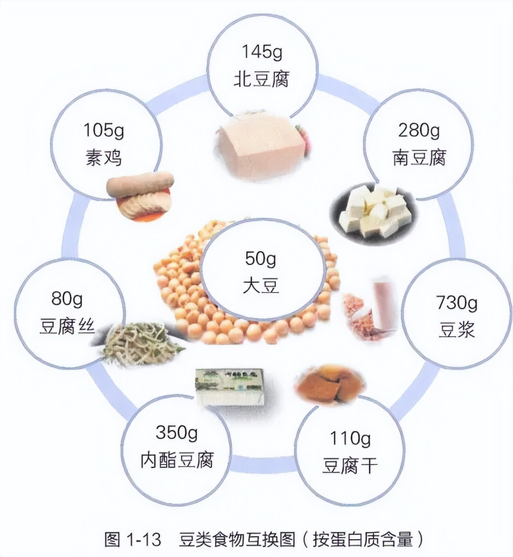 《中国住户膳食指南(2022)》保举,每东谈主每周食用105~175克大豆,每天15~25克。大豆不错被制作成种类庞大的豆成品,如豆乳、豆腐、香干、千张、豆腐脑、豆腐皮等等,不错换着来吃。若是按卵白质含量来换算,50克大豆越过于